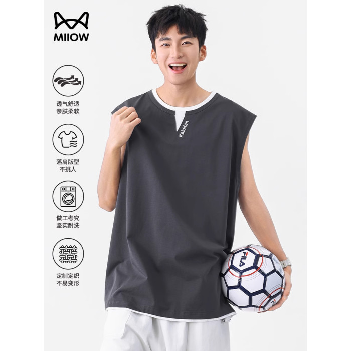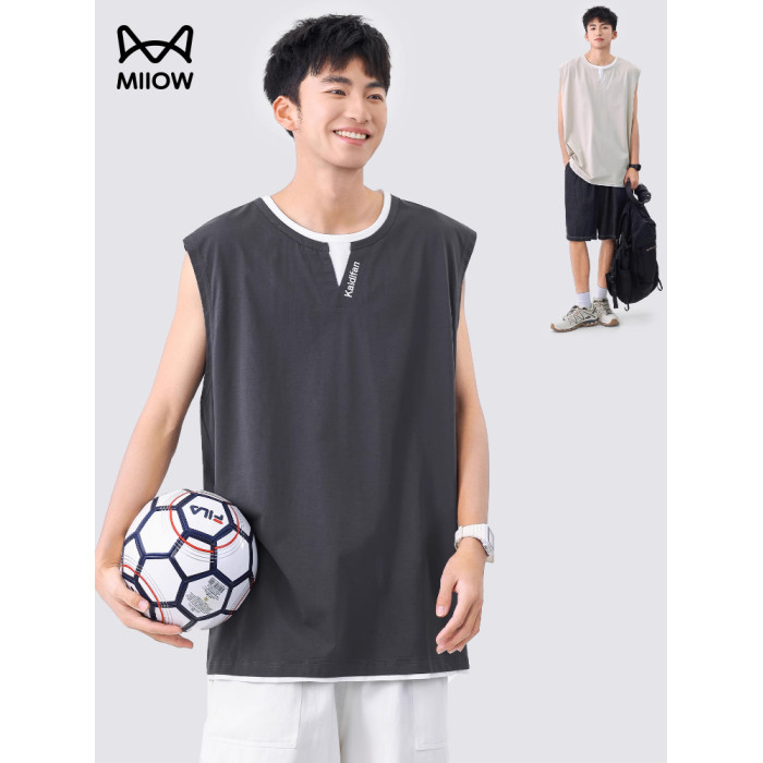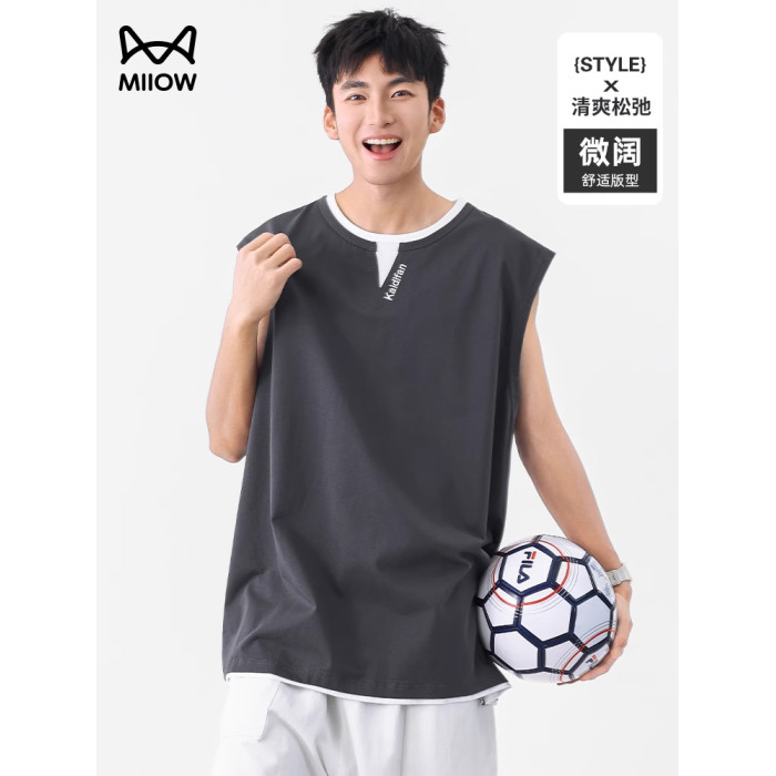 貓人潮牌假兩件設計感曡穿背心男士夏季新款運動無袖T恤休閒百搭