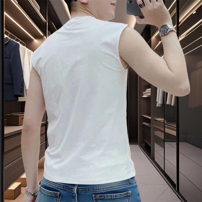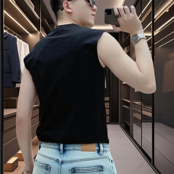 歐洲站男士背心夏季新款運動休閒百搭無袖t恤時尚輕奢純棉坎肩衫