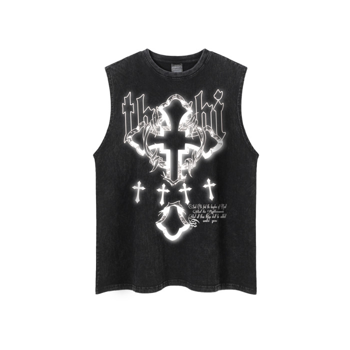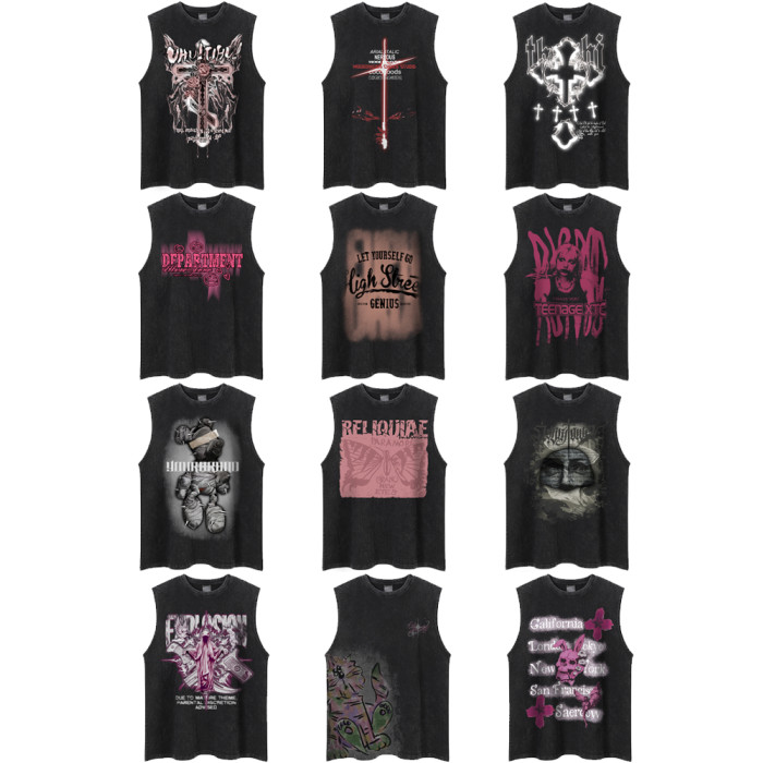 別致的少年美式高街潮牌痞帥風寬松坎肩背心男款夏季復古無袖t恤