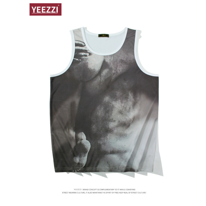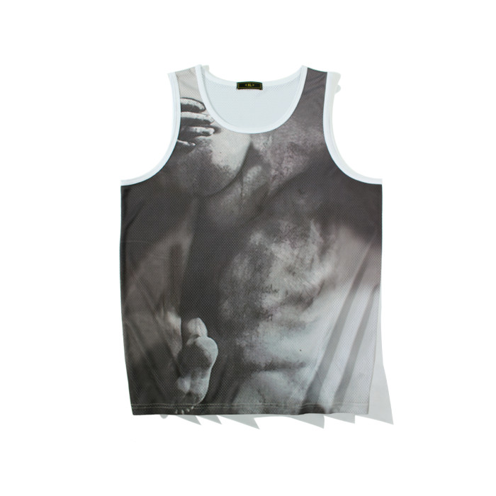 速乾印花羅紋背心男辣弟度假中性風無袖復古y2k美式設計感運動衣