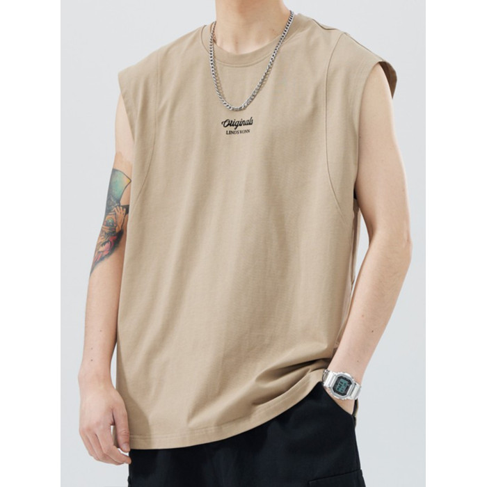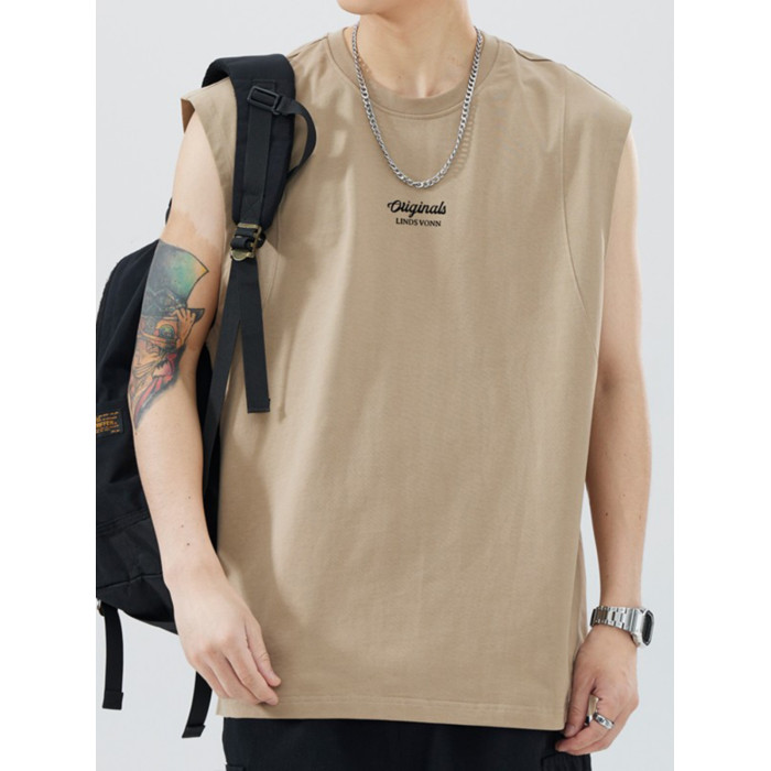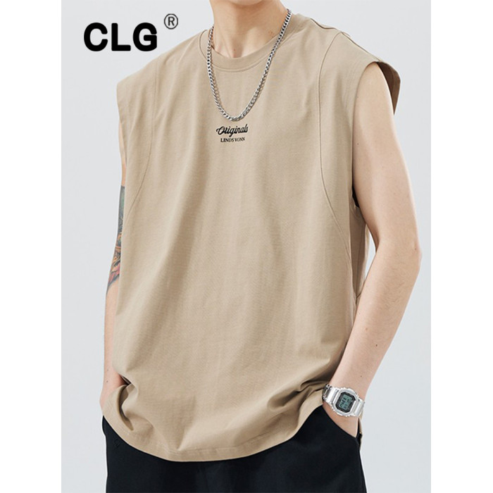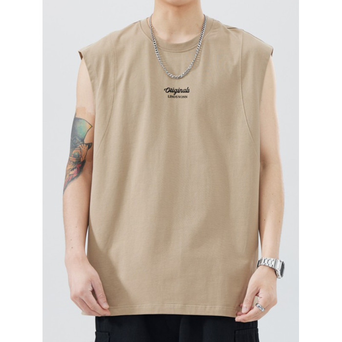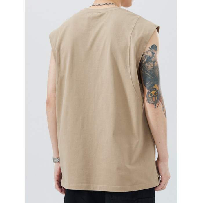 香港潮牌重磅無袖上衣男純棉美式砍袖T恤坎肩背心拼接寬松圓領短t