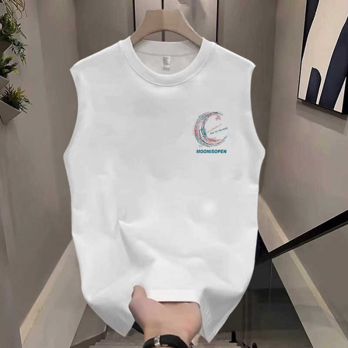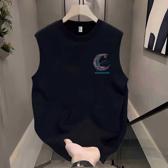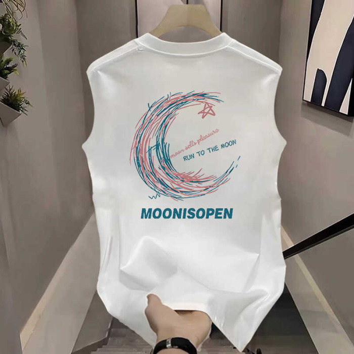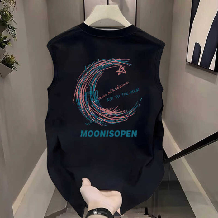 Ander Jurnal 美式重磅純棉無袖T恤男月亮圖案街頭寬松休閒背心男