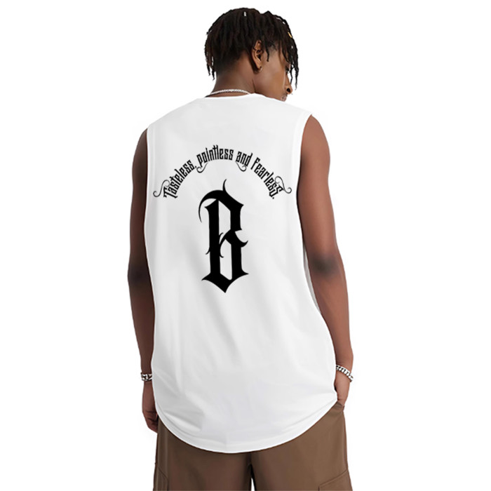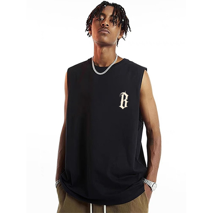 BONELESS BTW美式潮牌字母印花運動坎肩背心夏季寬松無袖圓領T恤