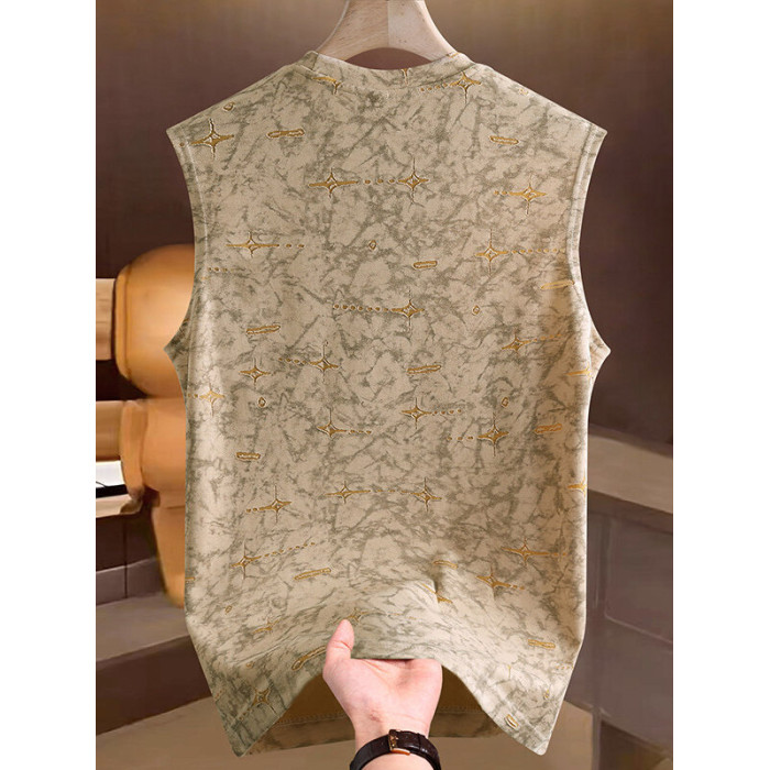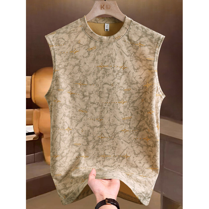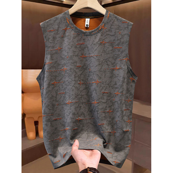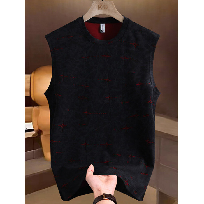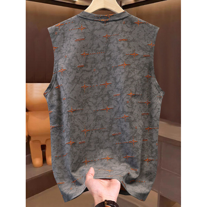 2025夏季新款背心男圓領青年學生時尚休閒網紅個性燒花無袖T恤潮