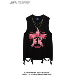51嘻哈潮牌趣味卡通運動汗背心男美式復古vintage寬松情侶無袖T恤