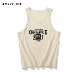 美式復古字母印花無袖T恤男款夏季坎肩寬松背心運動外穿圓領上衣
