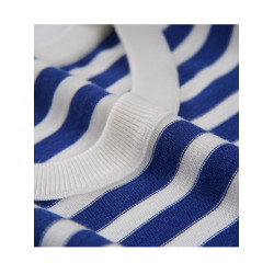 細膩舒適 16針全棉 白藍條紋針織衫女士薄毛衣初秋打底衫寬松上衣