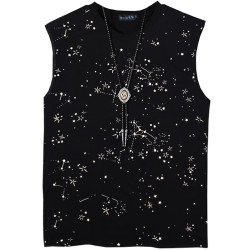 日系滿天星黑復古印花純棉背心男女2025新款潮流美式無袖寬松T恤