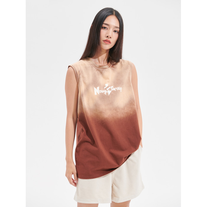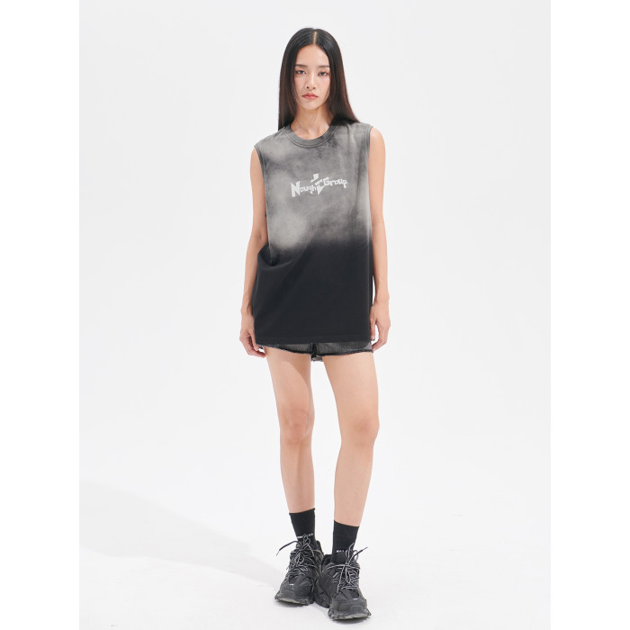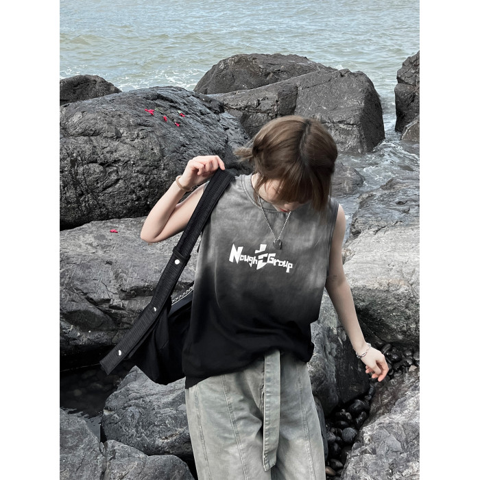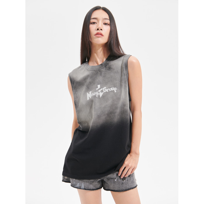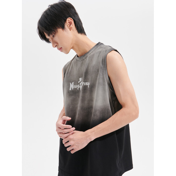 Nought Group夏季漸變水洗紥染背心做舊風潮牌基礎款無袖坎肩T恤