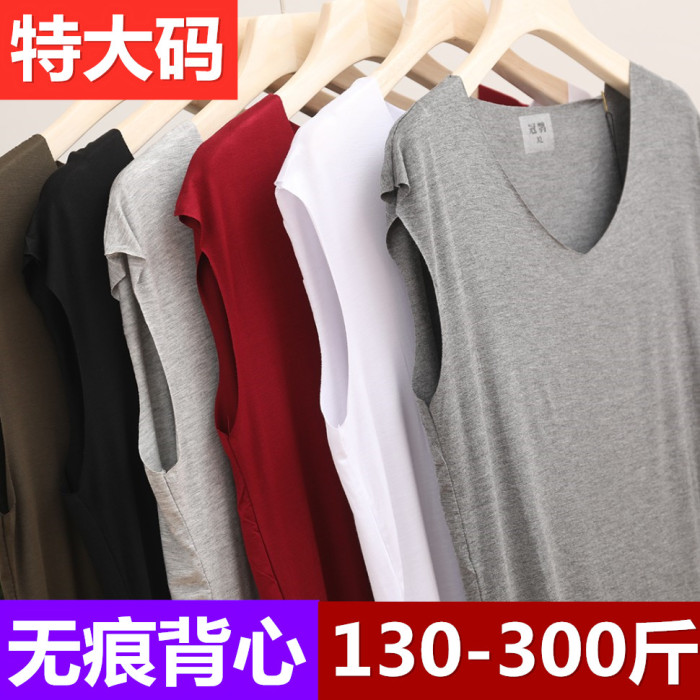 加肥加大莫代爾無痕汗衫肥佬超大碼運動背心男夏季打底衫潮流個性