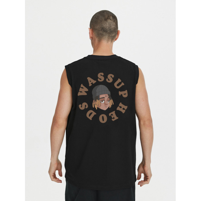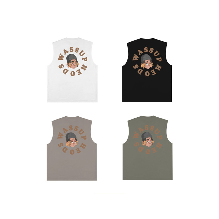 WASSUP HEODS髒辮男孩坎肩背心男生潮牌純棉夏季寬松無袖t恤情侶