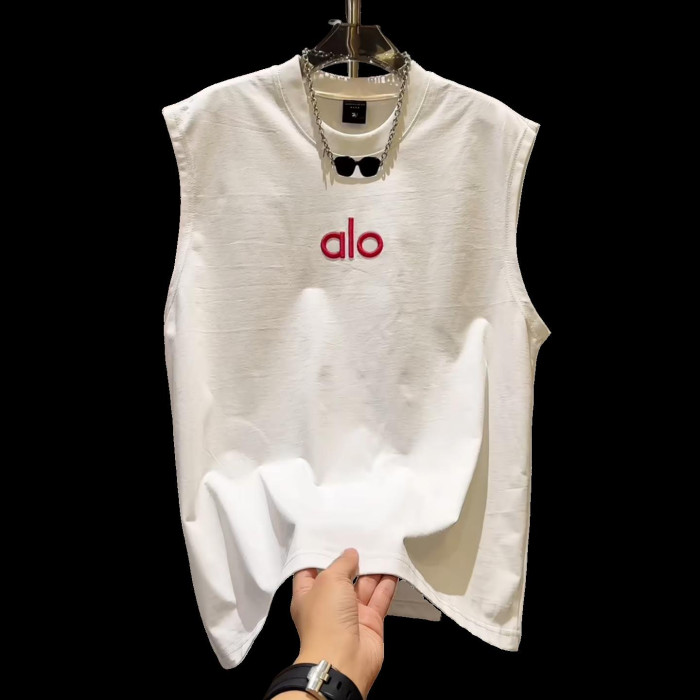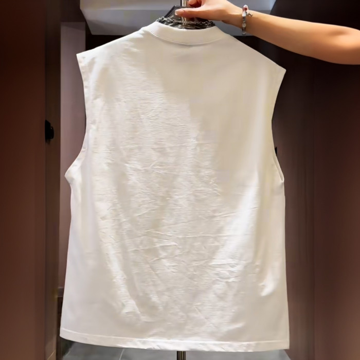 男士無袖刺綉字母修身T恤夏季新款潮牌背心運動圓領休閒坎肩上衣