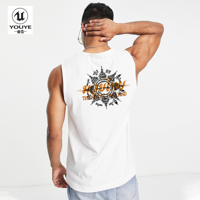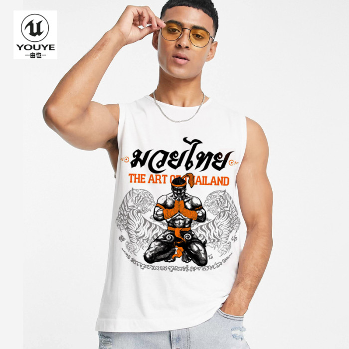 由也 古泰拳印花散打拳擊訓練MMA運動休閒服無袖背心t純棉坎肩