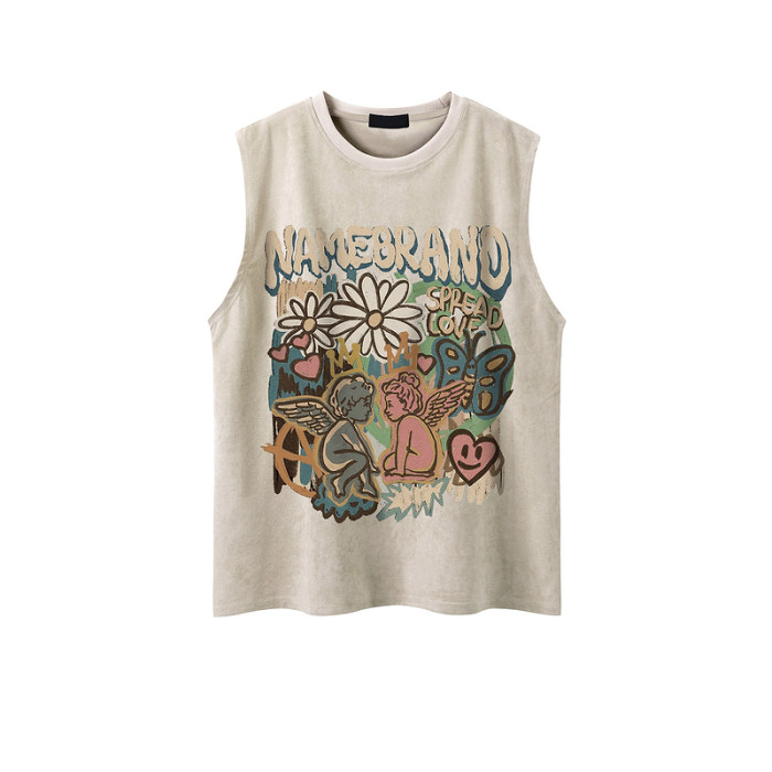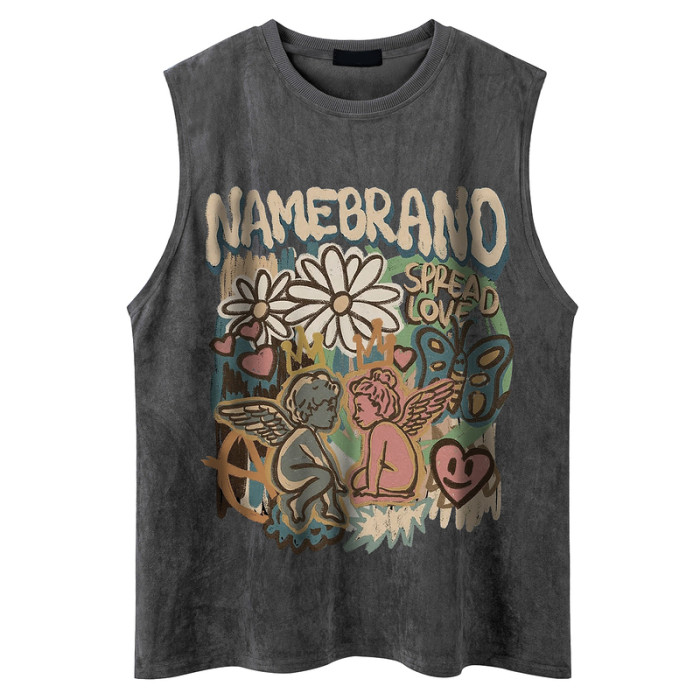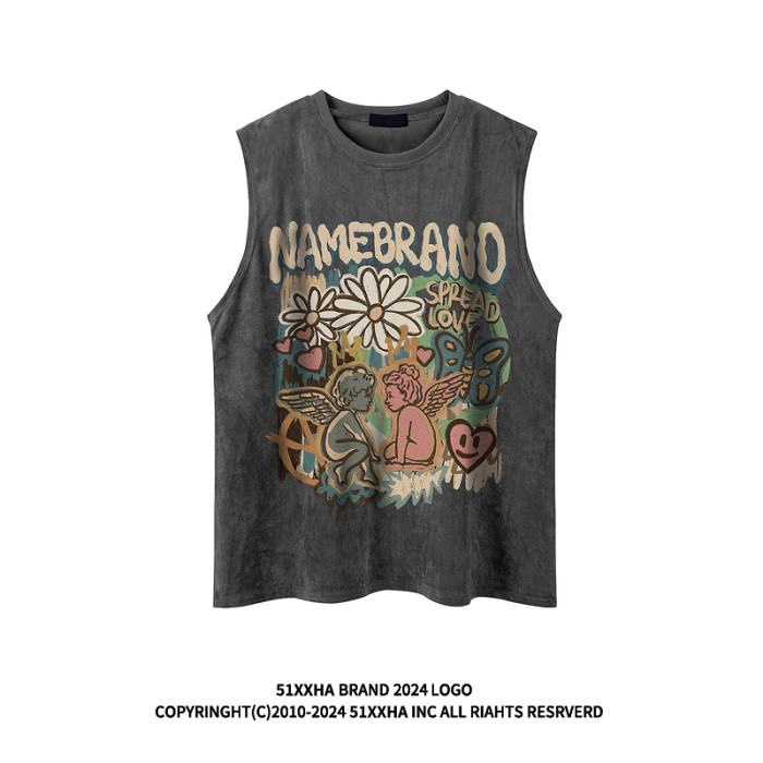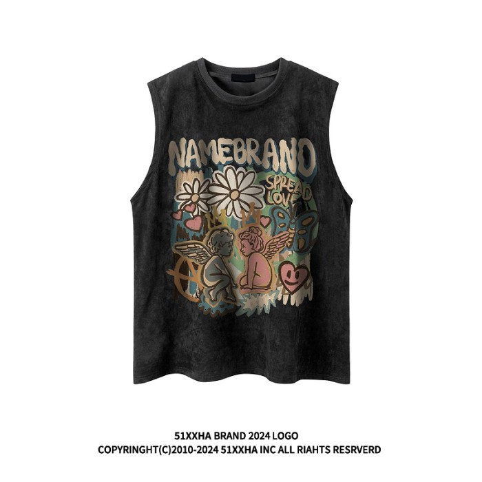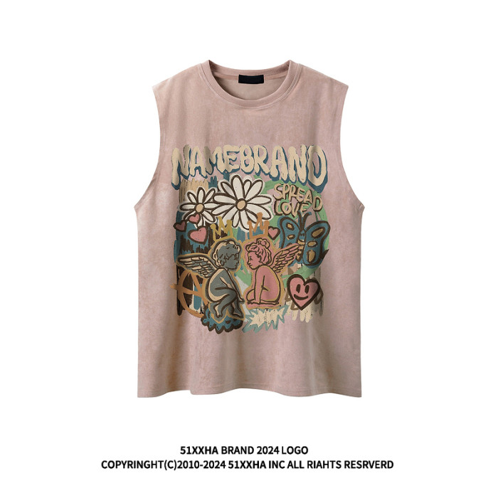 51嘻哈潮牌趣味卡通運動汗背心男美式復古vintage寬松情侶無袖T恤