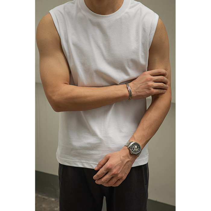 WooenRetro唔刃阿美哢嘰重磅無袖T恤背心純棉運動籃球打底衫男夏