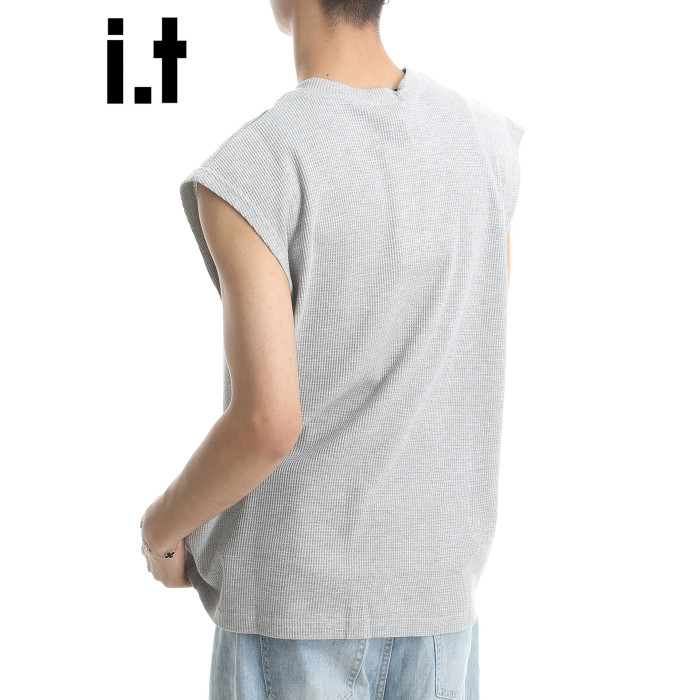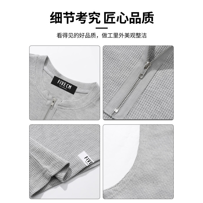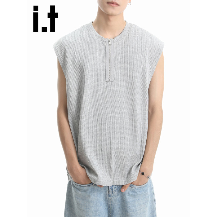 it :5cm/FIVECM美式灰色半拉鍊針織背心男款2025夏季薄款圓領上衣