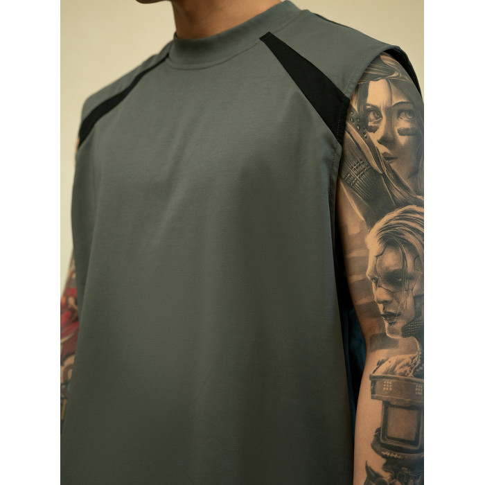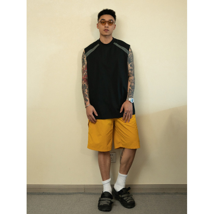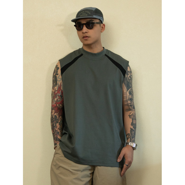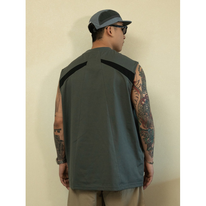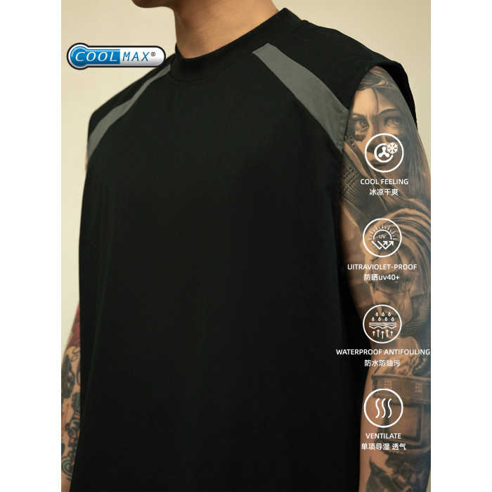 GYOZA COOLMAX寬松涼感速乾小領口防水透氣無袖拼接運動坎肩背心
