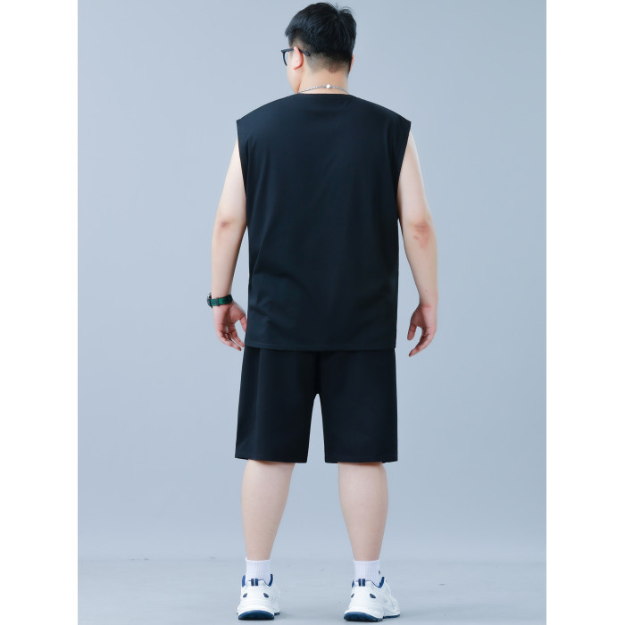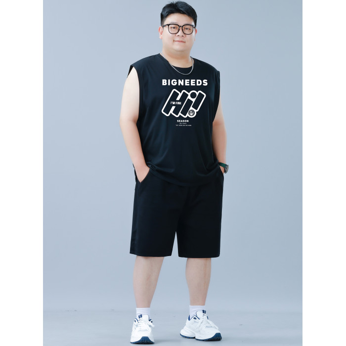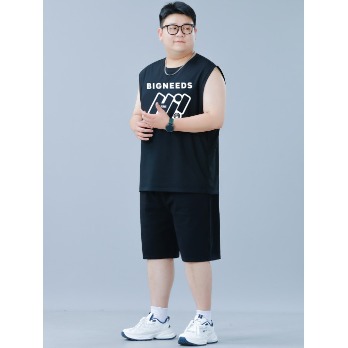 夏季大碼男士背心運動套裝男裝寬松肥佬無袖T恤上衣休閒運動套裝