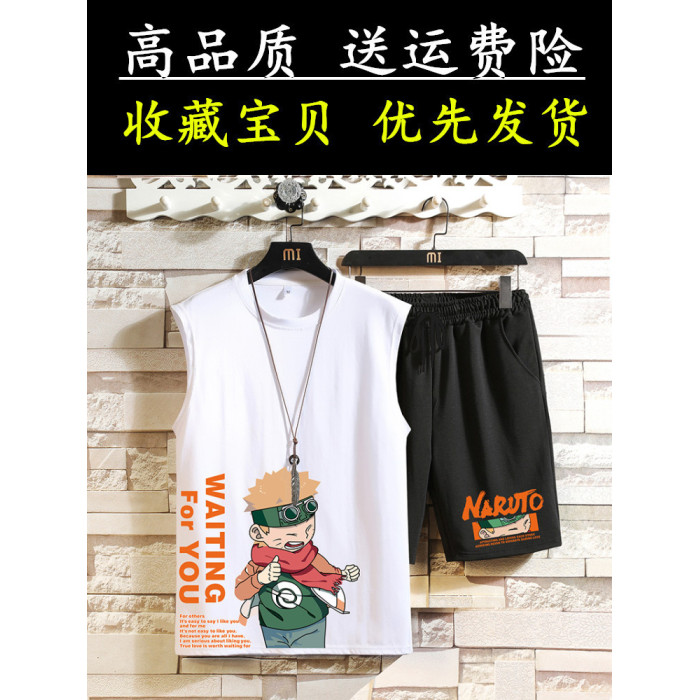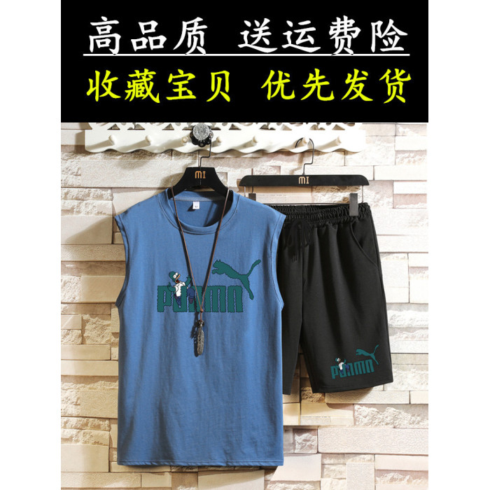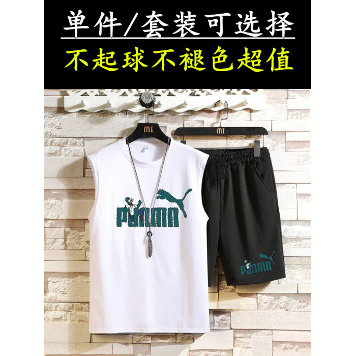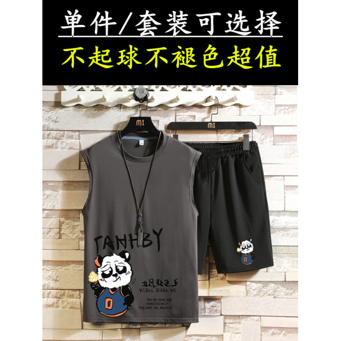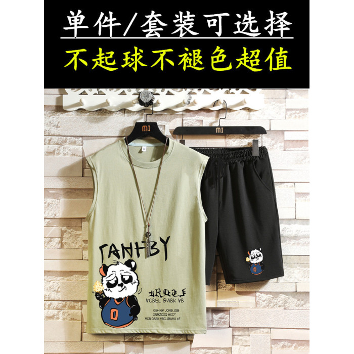 青少年運動套裝13男孩無袖t恤14初中學生背心短褲12-15嵗大童夏裝