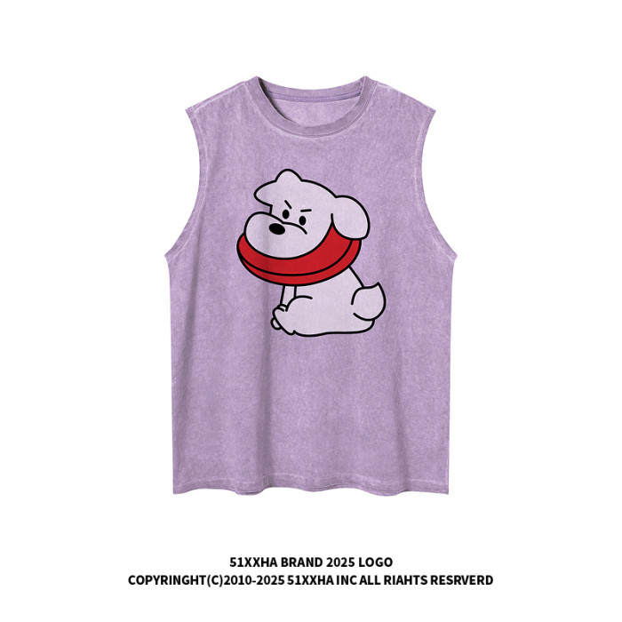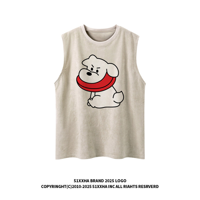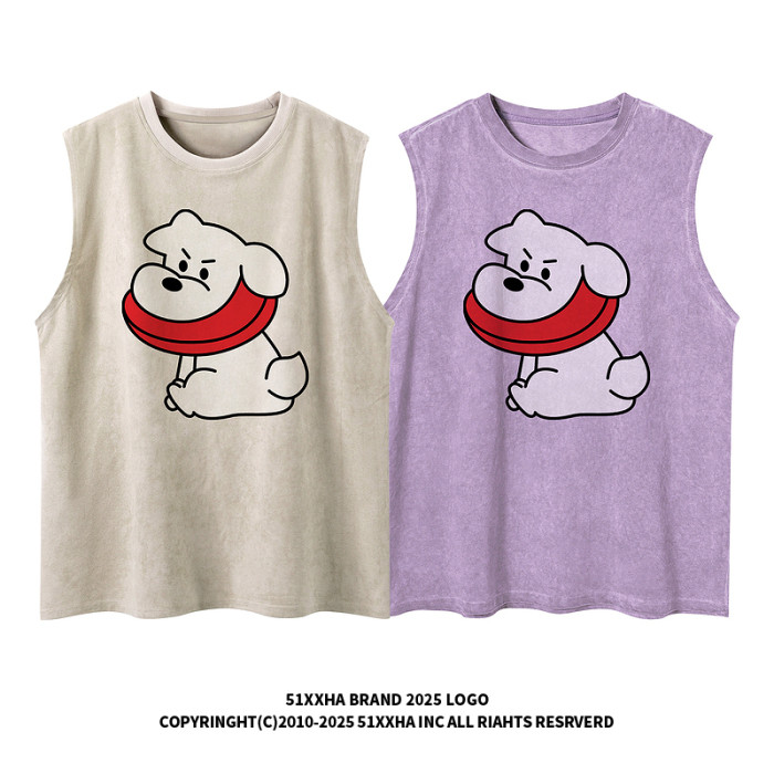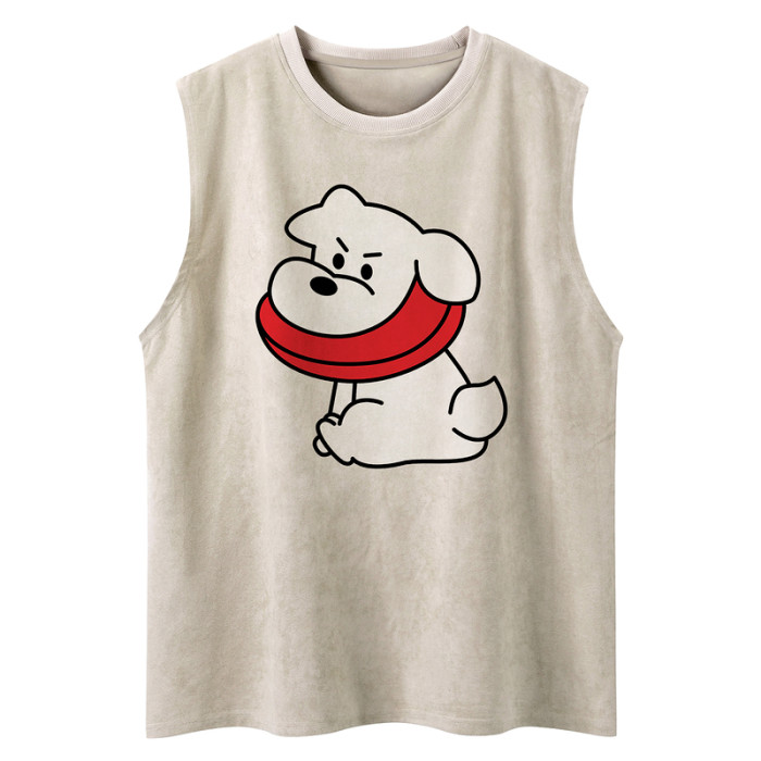 51嘻哈日系小狗印花麂皮絨無袖T恤男女夏季寬松運動情侶坎肩背心