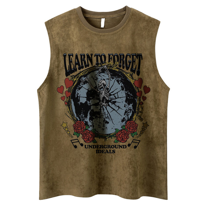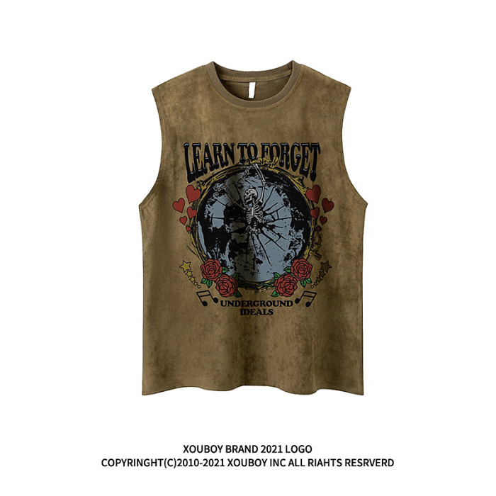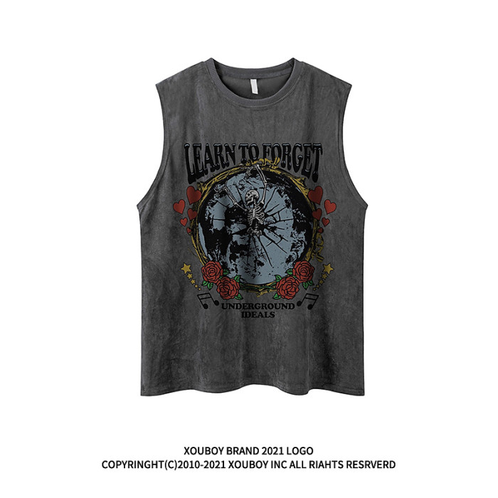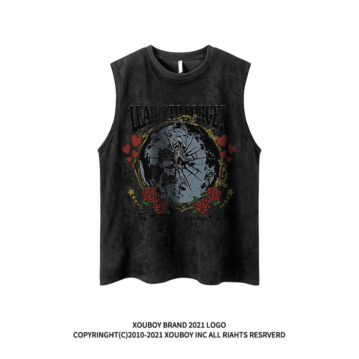 歐美嘻哈設計感骷髏印花無袖T恤男潮牌街頭寬松運動坎肩籃球背心