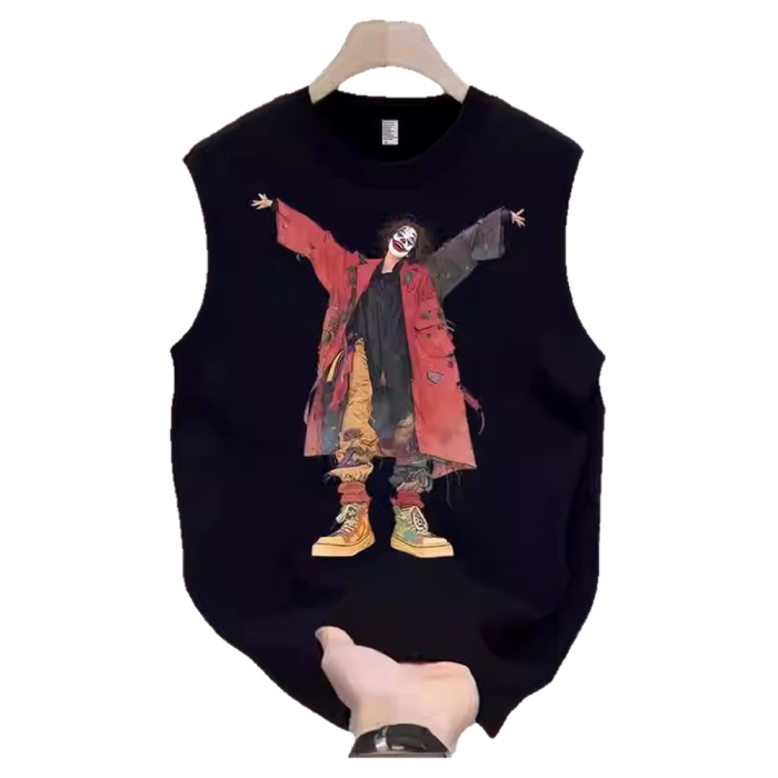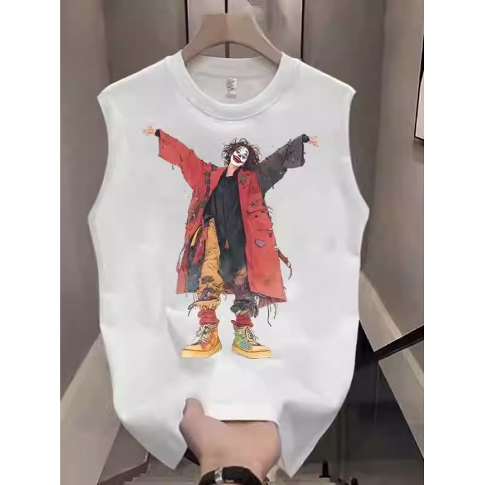 潮牌重磅純棉背心男士無袖t恤2025新款夏季小醜印花運動坎肩男款