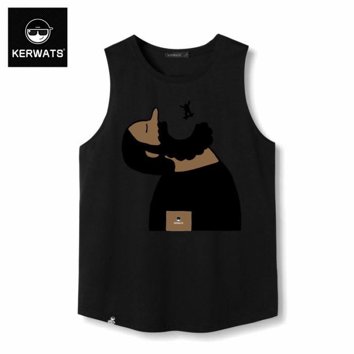 KERWATS潮牌大碼大嘴卡通人印花無袖t恤加肥加大運動男裝圓領背心