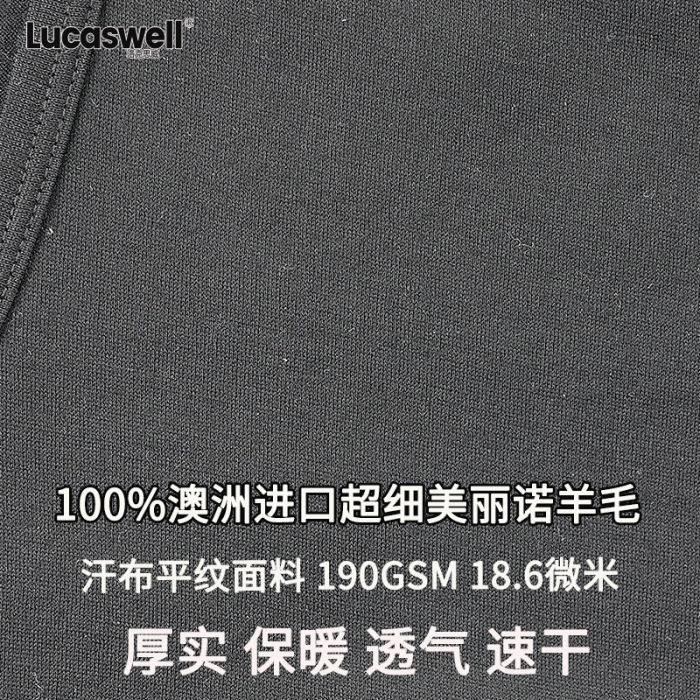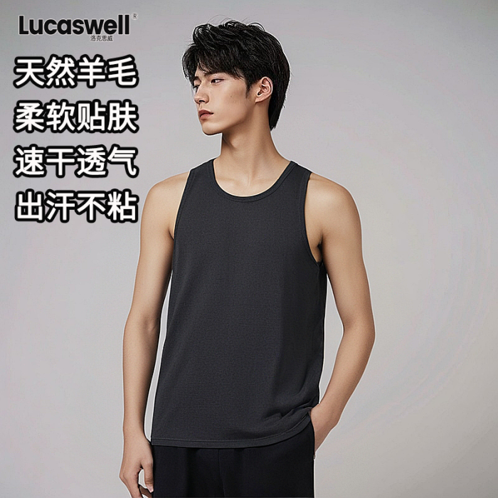 Lucaswell/洛克思威新款美麗諾羊毛男內搭速乾透氣美利奴背心汗布