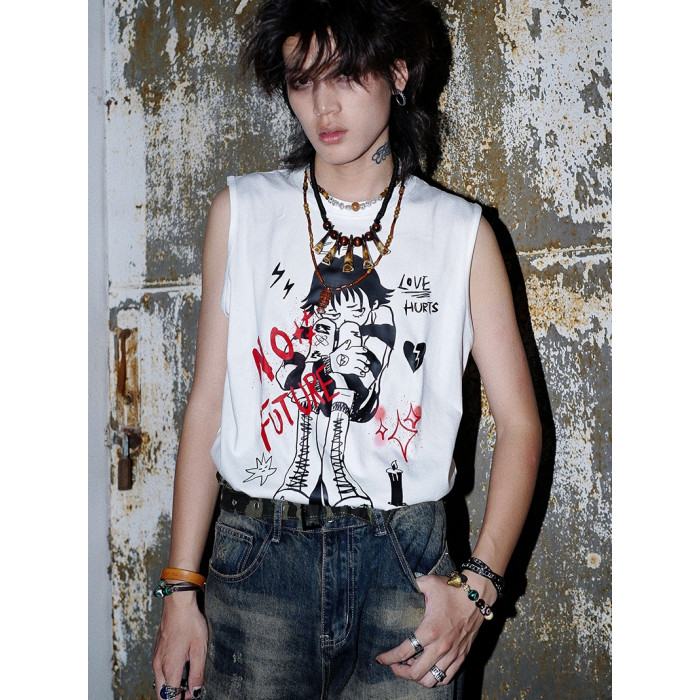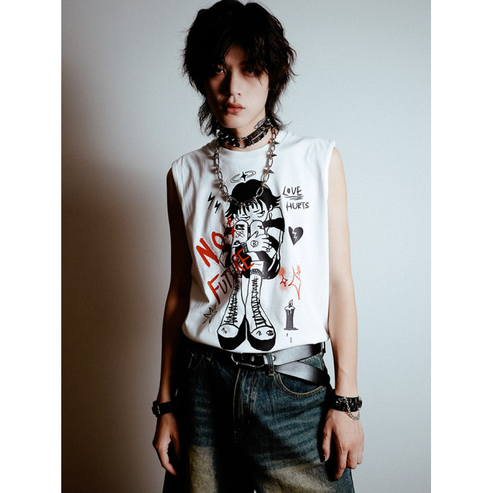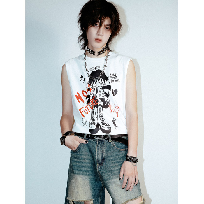 別閙BIZZCUT/青春往事/龐克坎肩無袖t恤男亞文化二次元亞比背心女
