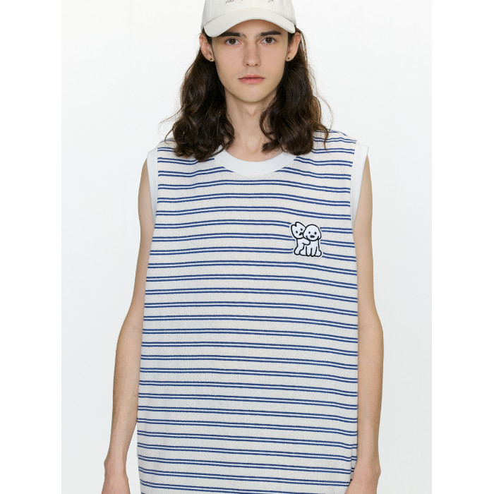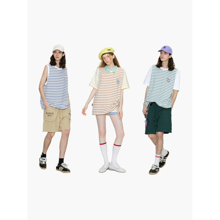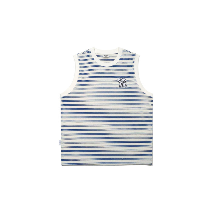 GUUKA&matsui聯名小狗刺綉坎肩背心男夏 情侶撞色條紋無袖T恤寬松