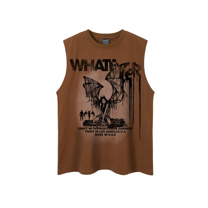 別致的少年美式潮牌復古寬松痞帥風外穿無袖坎肩背心男款夏季潮流