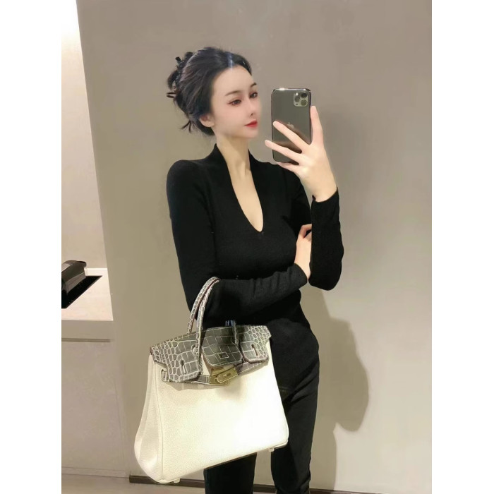 跑量款~女士黑色V領氣質細針美麗諾羊毛針織衫修身顯瘦打底衫毛衣