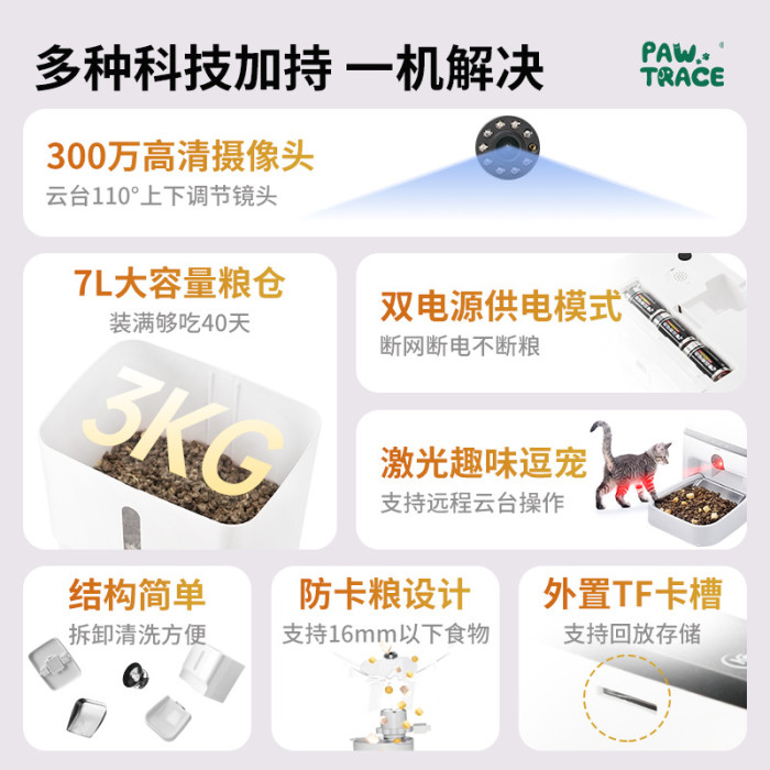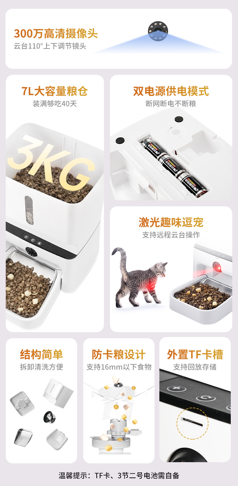 7L容量寵物智能自動喂食器紅外雷射影片遠程互動寵物自動投食機