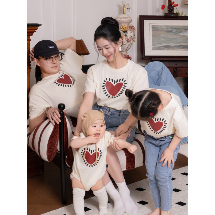 全家福親子裝一家三口四口滿月小月齡百天周嵗嬰兒母子母女親子照