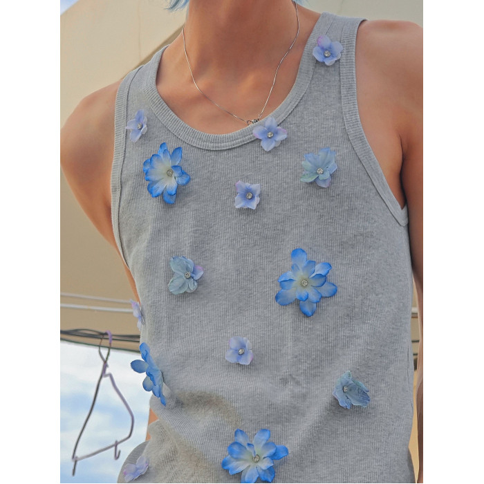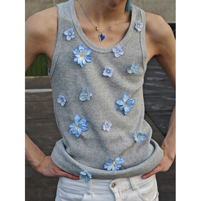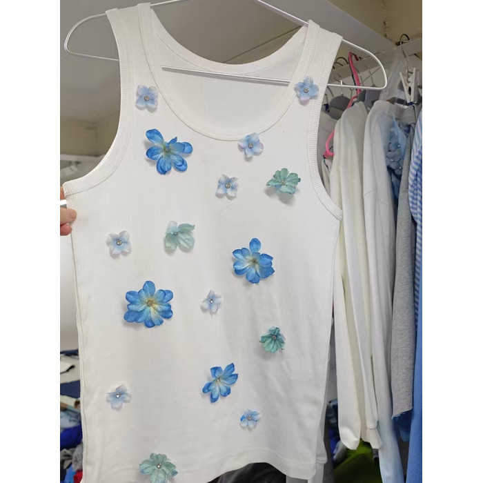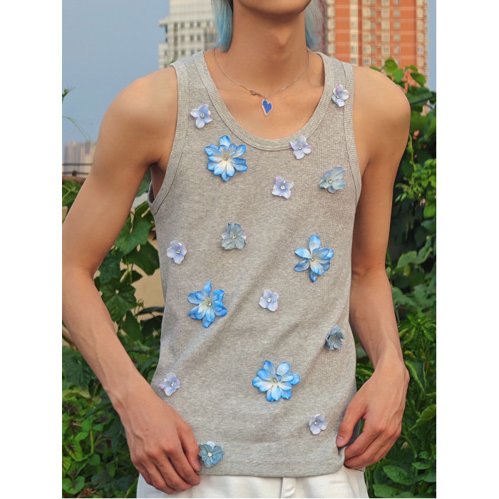 chengguang wang-蘖手工染色花花鑽飾夏季修身背心外穿無袖男t恤