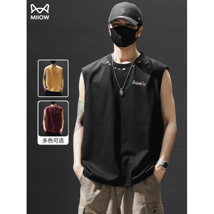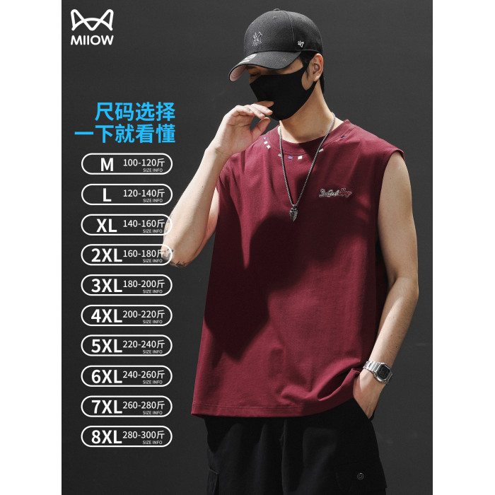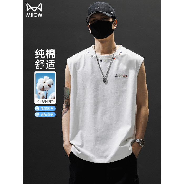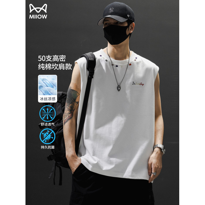 貓人背心男士夏季薄款寬松大碼無袖t恤2025新款運動休閒坎肩上衣