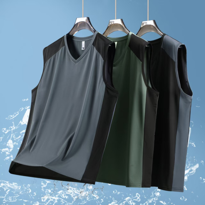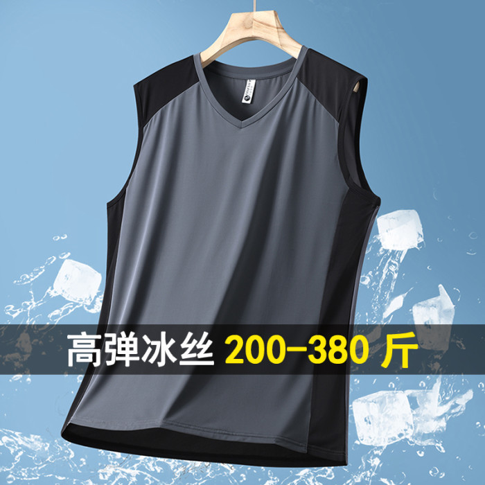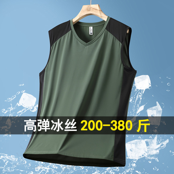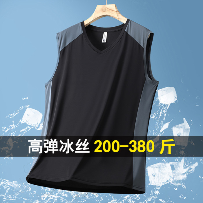 大碼冰絲無袖背心男新款寬松跑步運動加肥加大胖子v領短袖夏300斤
