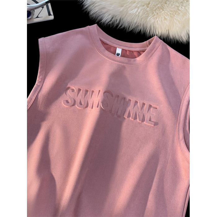 粉色麂皮絨坎肩背心男夏季潮牌潮流大碼跑步健身運動情侶無袖t恤
