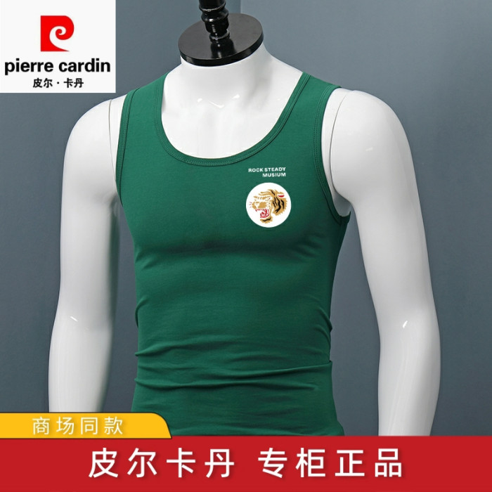 皮爾卡丹純棉寬肩背心男士夏季新款大碼修身薄款運動健身無袖汗衫