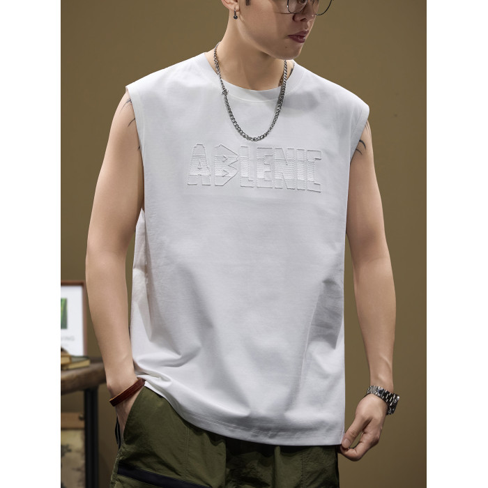 潮牌時尚立體印花無袖坎肩t恤男士夏季寬松涼感大碼健身運動背心