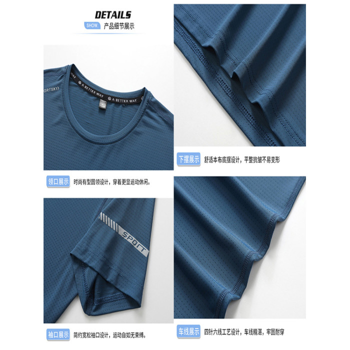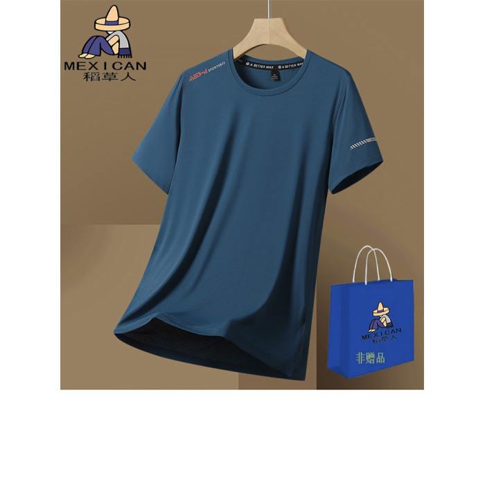 稻草人高品質冰絲純色運動體恤衫男夏季寬松透氣圓領薄款速乾短袖