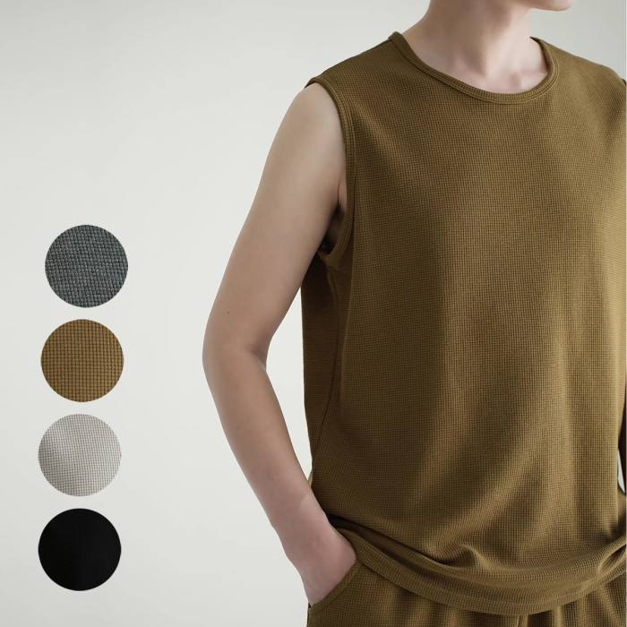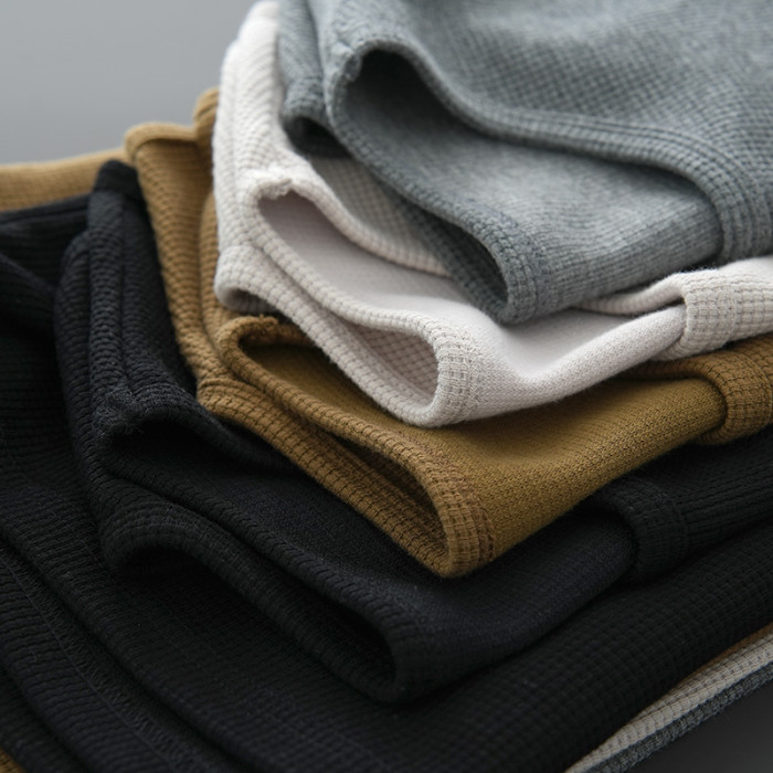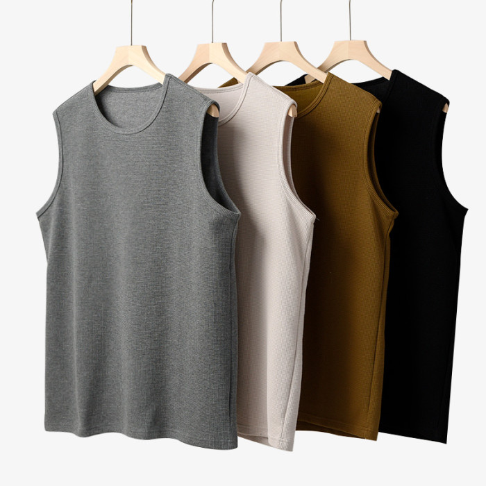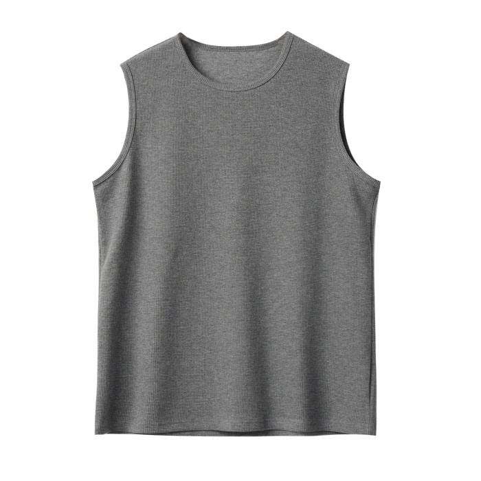 定織面料 男士華夫格背心 圓領純色薄款 寬松打底衫 T恤 夏款男裝