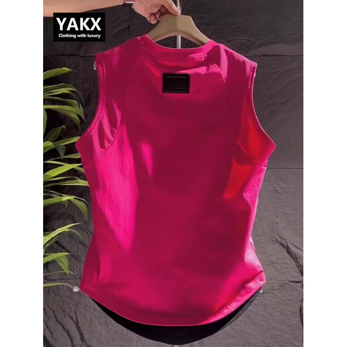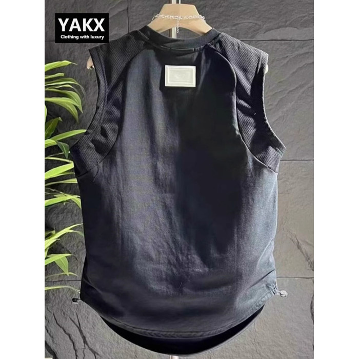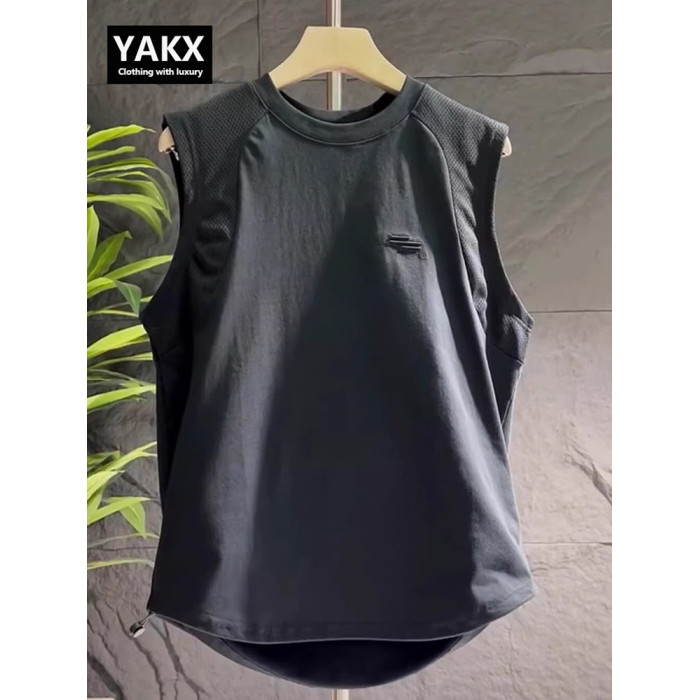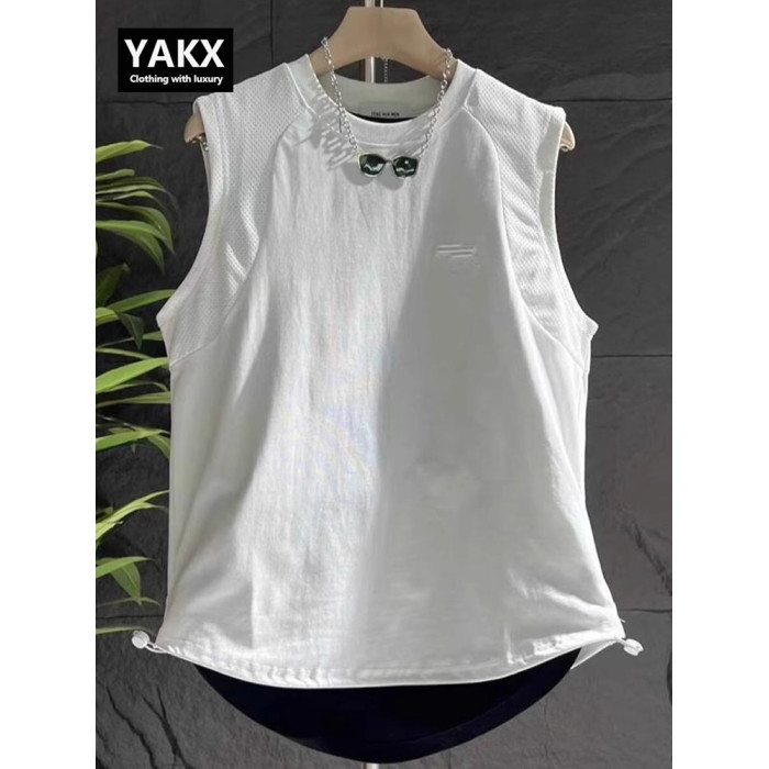 潮牌美式冰絲網眼背心男士夏季2025新款運動坎肩拼接無袖t恤男款