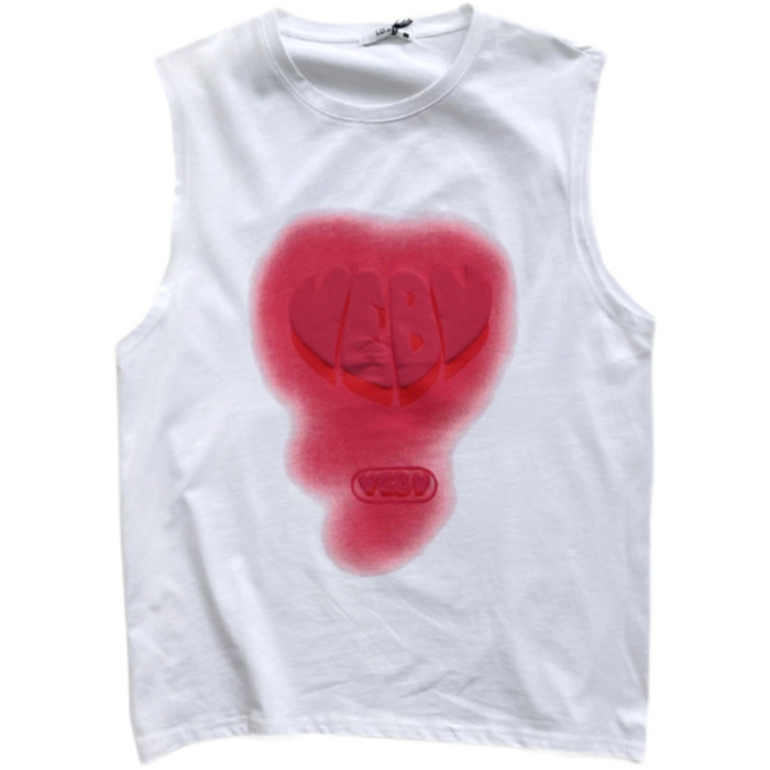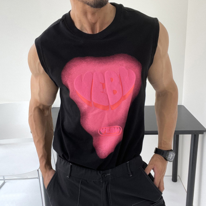 廓形不挑人!立體印花純棉直筒寬松無袖T恤背心肌肉男夏運動坎肩