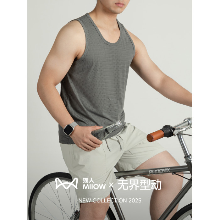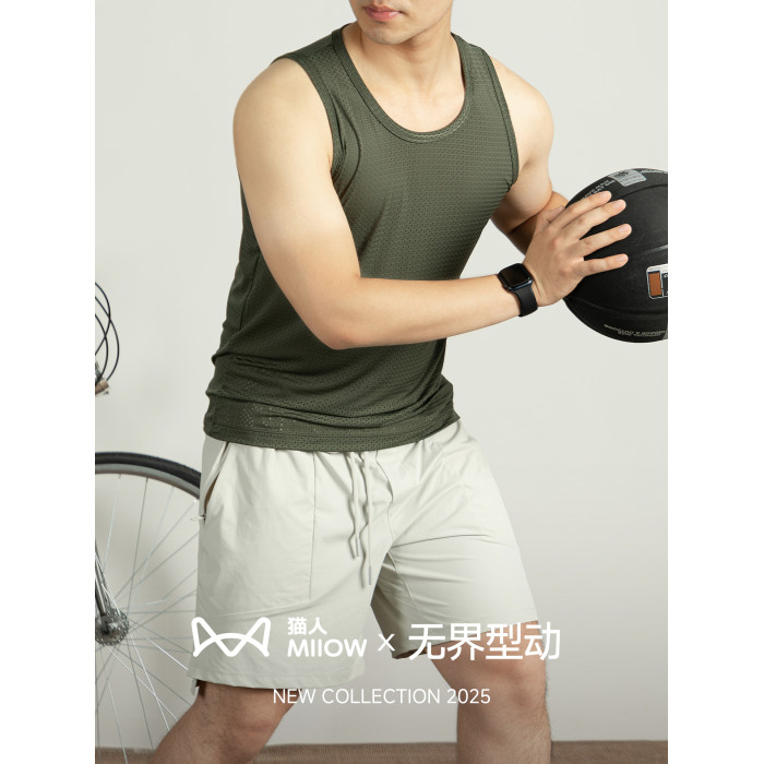 貓人【chao彈冰爽】男士背心工字夏季鏤空涼感速乾戶外釣魚運動