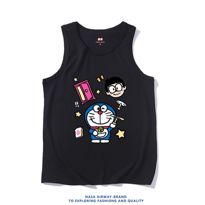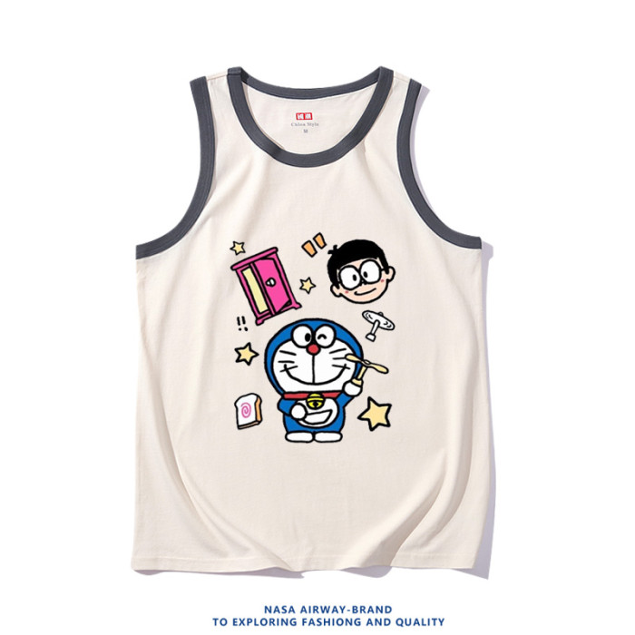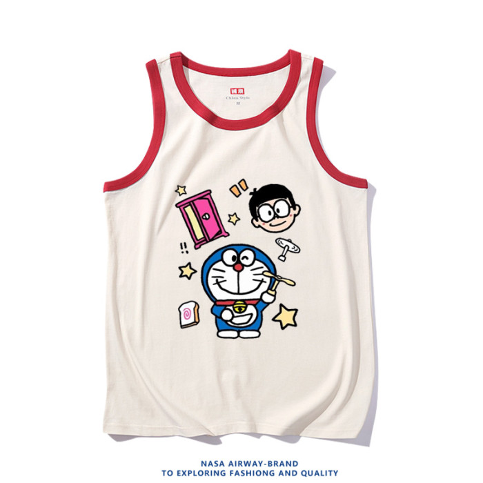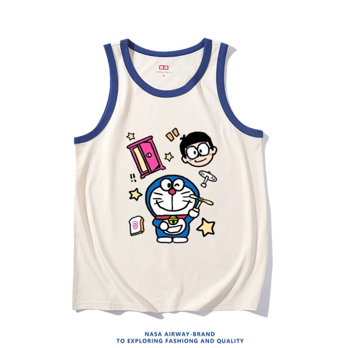 NASA美式潮牌哆啦A夢卡通復古純棉背心男女薄款寬松無袖T恤吊帶夏