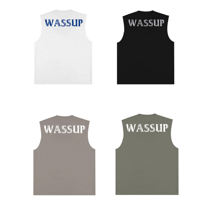 WASSUP HEODS無袖t恤背心男士夏季純棉寬松潮牌ins坎肩男生運動