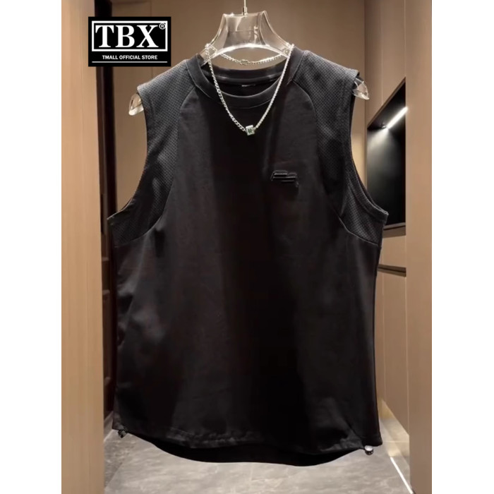 潮牌男士純棉背心夏季2025新款網孔透氣運動健身無袖T恤男款坎肩
