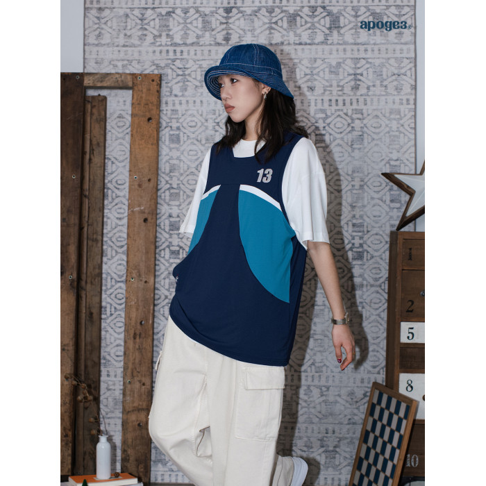 APOGE3阿保機 流隱球衣澤西風運動背心男女同款撞色拼接寬松健身