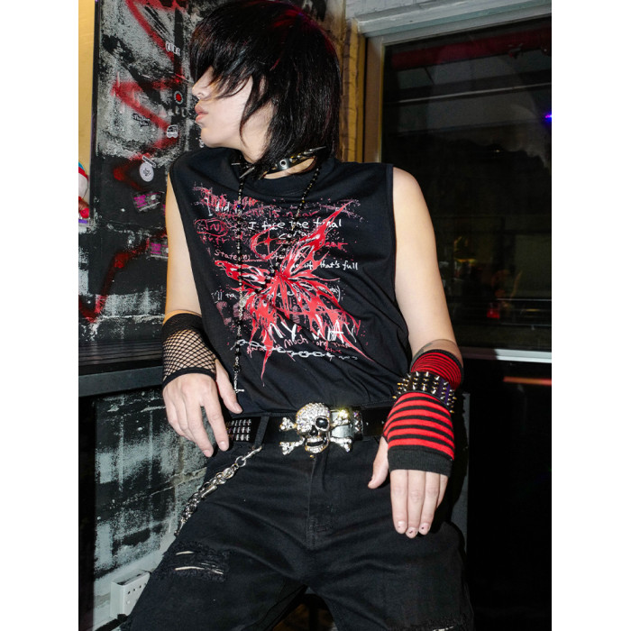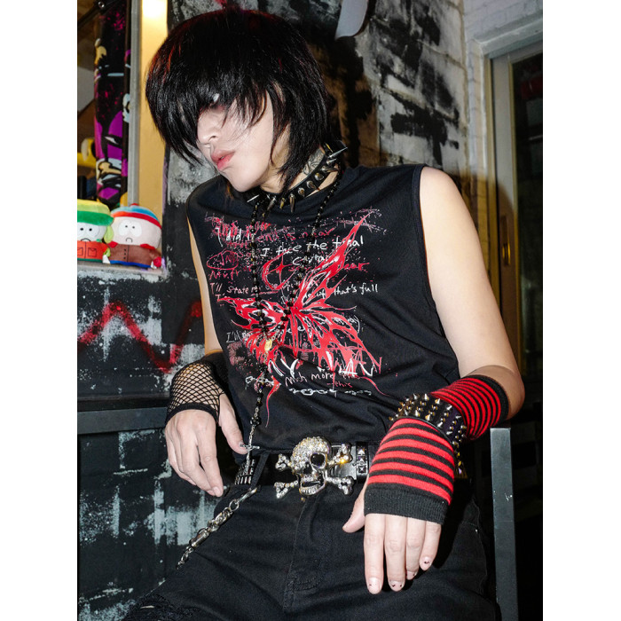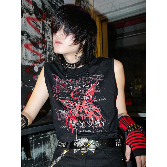別閙BIZZCUT/蝴蝶涅槃/暗黑亞文化龐克蝴蝶印花無袖背心坎肩